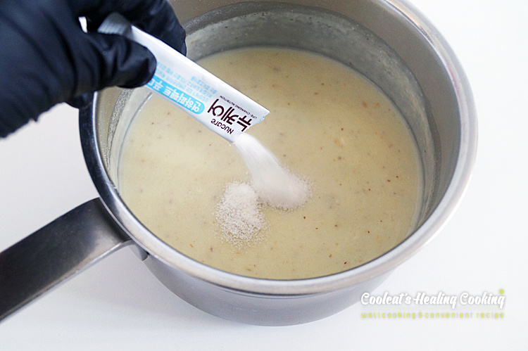 아몬드 고구마 타락죽의 점도는 연하퍼펙트 푸디의 양을 가감해 조절해 주세요!