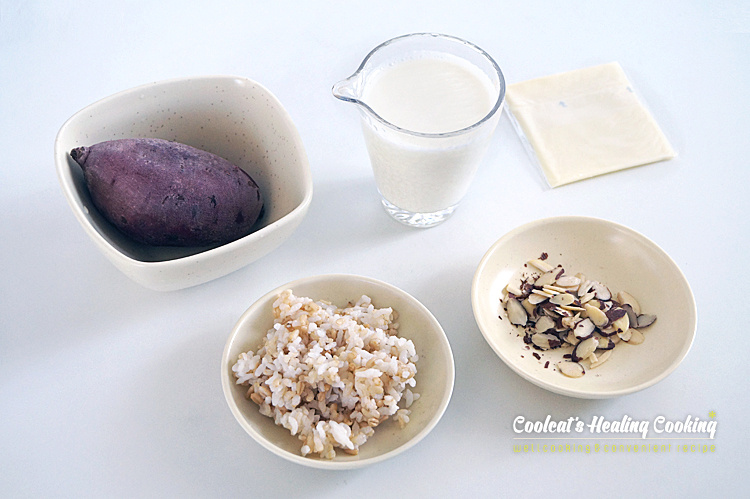 잡곡밥과 고구마, 우유, 아몬드, 치즈가 들어가 영양면에서도 모자람이 없고 맛 또한 훌륭해서 연하곤란자도 맛있는 음식을 즐기는 행복을 함께할 수 있을 거예요.