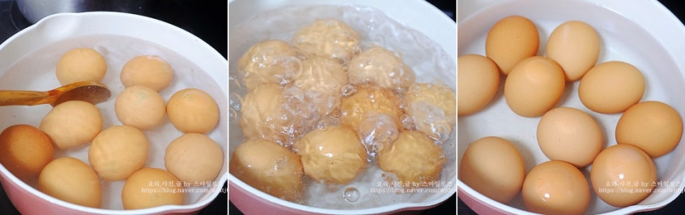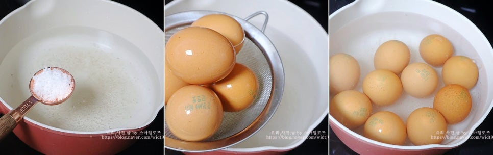 계란이 잠길 수 있을 만큼 냄비에 물을 붓고 물이 끓으면