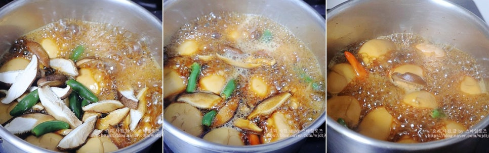 버섯과 고추를 넣은 뒤 중약불에서 휘리릭 끓인 뒤 불을 끄면