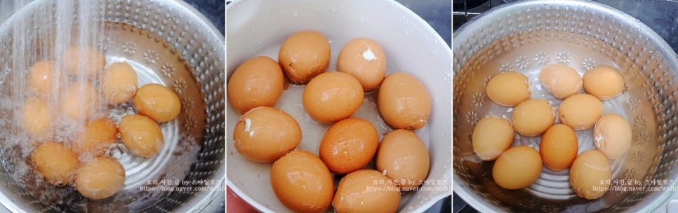삶은 계란은 바로 흐르는 물로 열기를 식혀주고