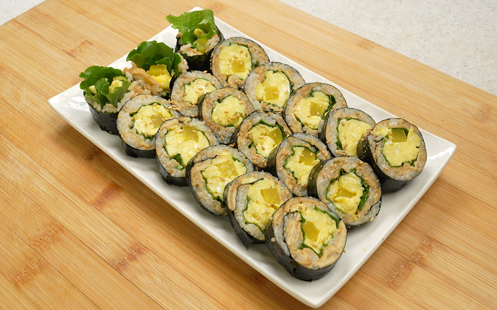 김밥 한번 싸려면 은근 재료 준비하기에 번거롭지요? 김밥 속 재료 딱 4가지로 특별하면서도 색다른 김밥을 만들 수 있어요 볶은 유부를 밥에 섞어 식감은 쫄깃쫄깃하고 단짠한 김밥 재료는 단순한데 유부의 달큰함 덕분에 생각보다 더 맛있는 김밥 맛있게 만들어보세요~!
