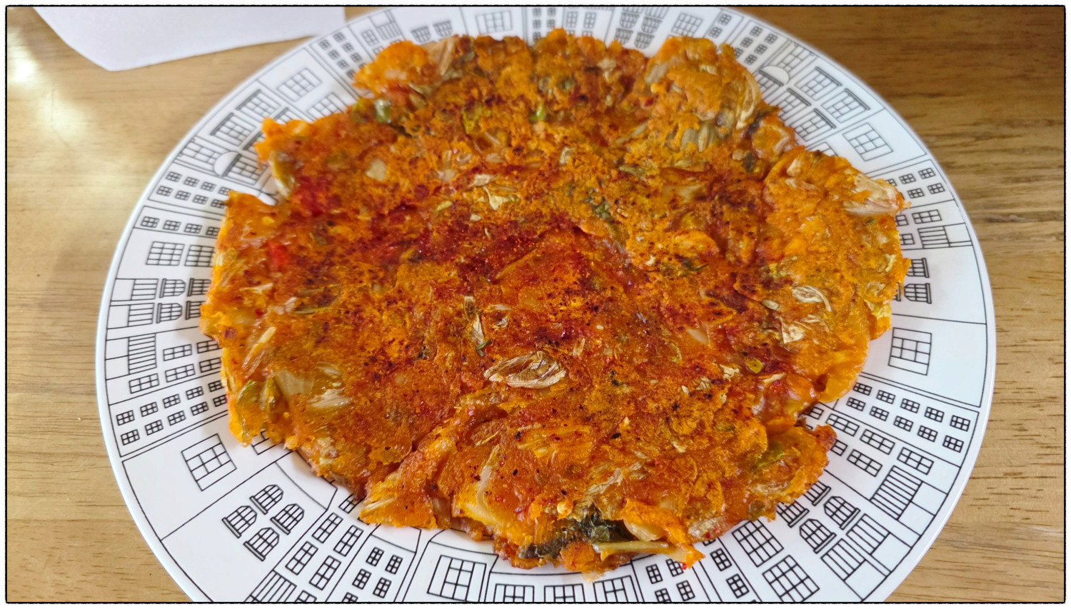 막걸리안주로 김치부침개만한것이 없네요~ 붉은요리에 맞춰서 고춧가루도 팍팍 뿌려주었더니 더욱더 맛이 좋은 것 같아요~