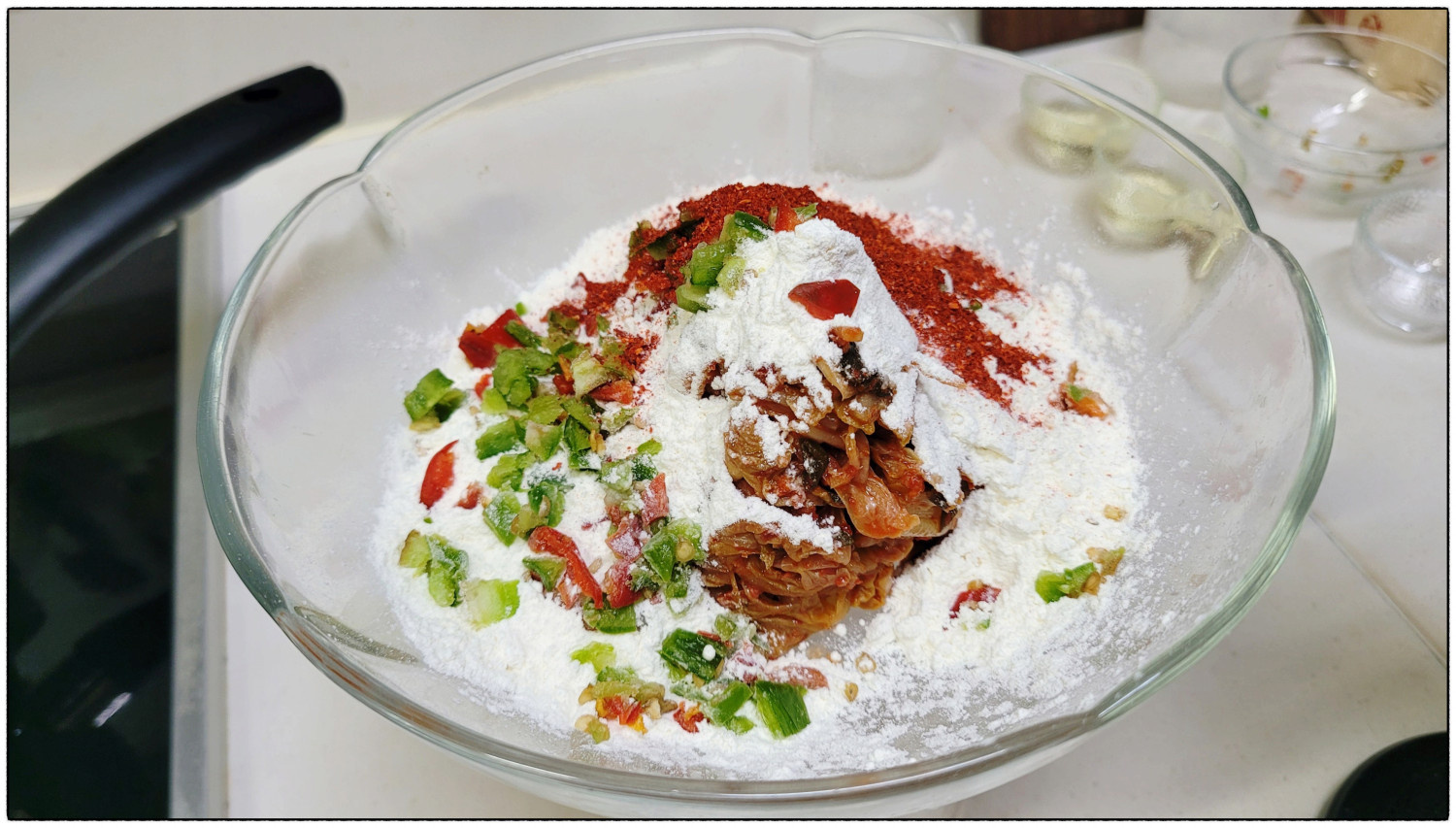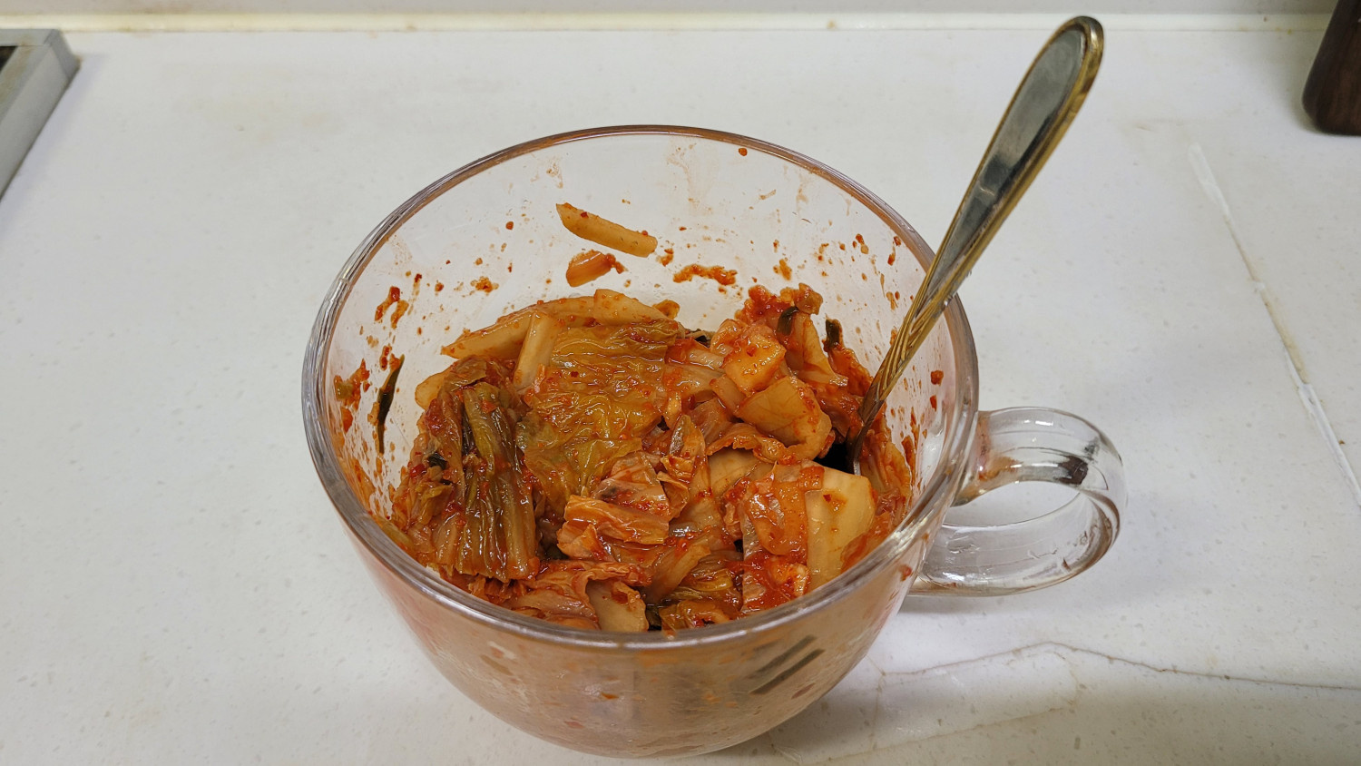 김칫국물은 일부러 빼지도 추가하지도 않았어요. 김치에 묻은정도 들어갔어요.