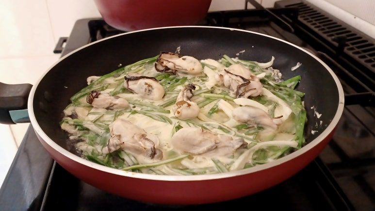 마침 마트에서 굴이 세일해서 굴을 얼른 구입하고 채소가게에서 부추가 보여서 부추도 구입하고 집에 와서 구입한 물건들을 정리하다가 굴과 부추전을 보고 그냥 굴 부추전을 부쳐봤어요