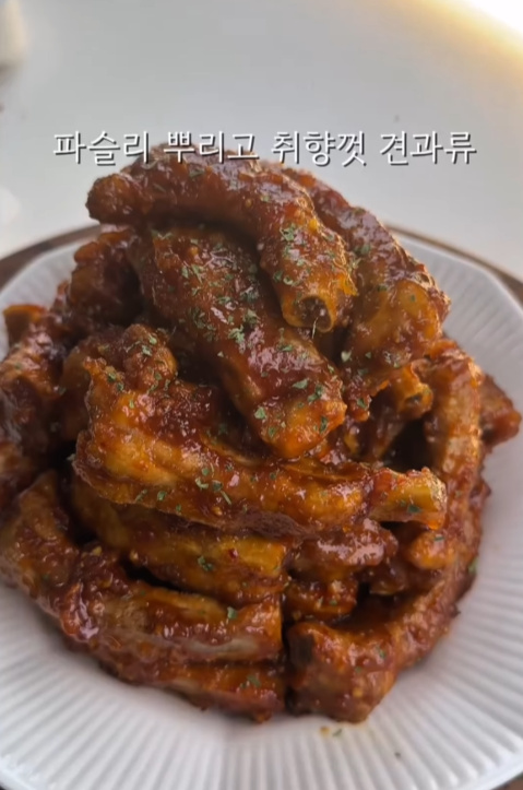 순식간에 다~ 먹는 중독성 짱! 딸기쨈 등갈비 조림 레시피에요!