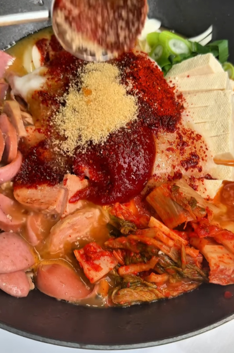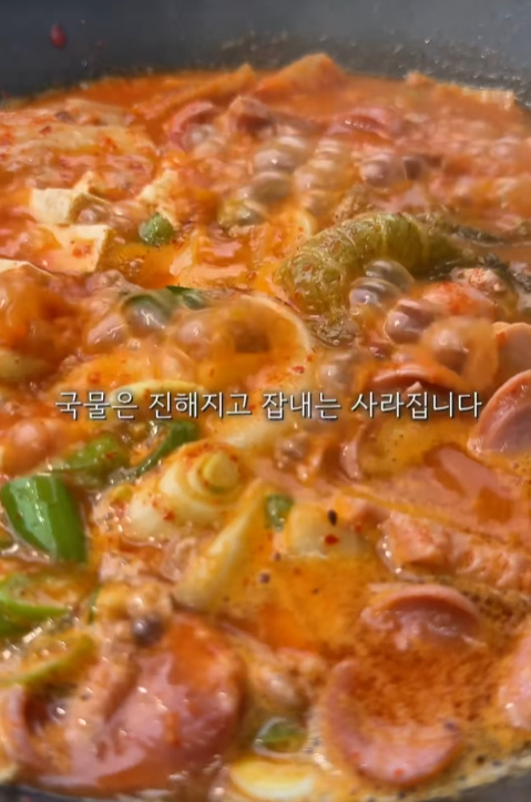 이전에 업장에서 쓰던 방식이기도 하고, 여러 셰프 레시피를 보다 보니 공통으로 나오는 포인트더라구요. 부대찌개는 끓이는 음식이 아니라 볶아서 완성하는 음식입니다.