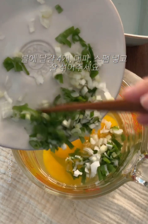 대파 대신 청양고추 2개 넣어도 좋아요.! 달걀물에 스팸 넣어주니 밥에 별도 간을 안해도 맛있어요.