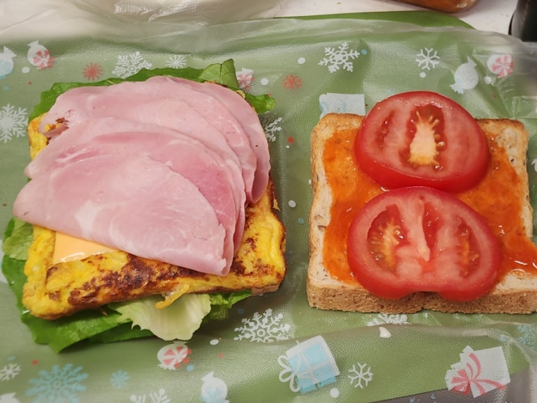 나는 먹기 편한 방식을 추구하기 때문에 항상 랩을 미리 깔고 그위에서 샌드위치를 만드는편.