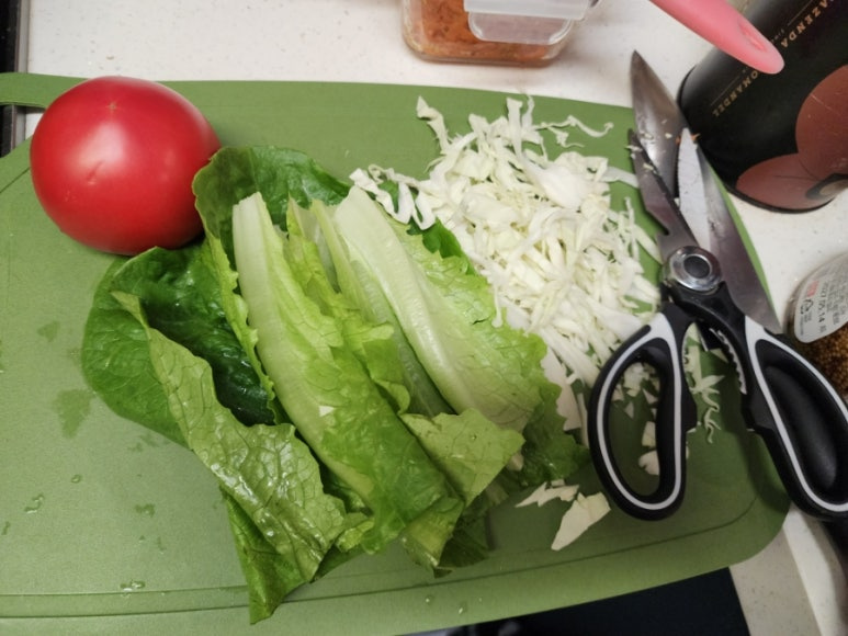 잠봉햄은 그대로 사용한다. 로메인을 적당한 사이즈로 컷팅.