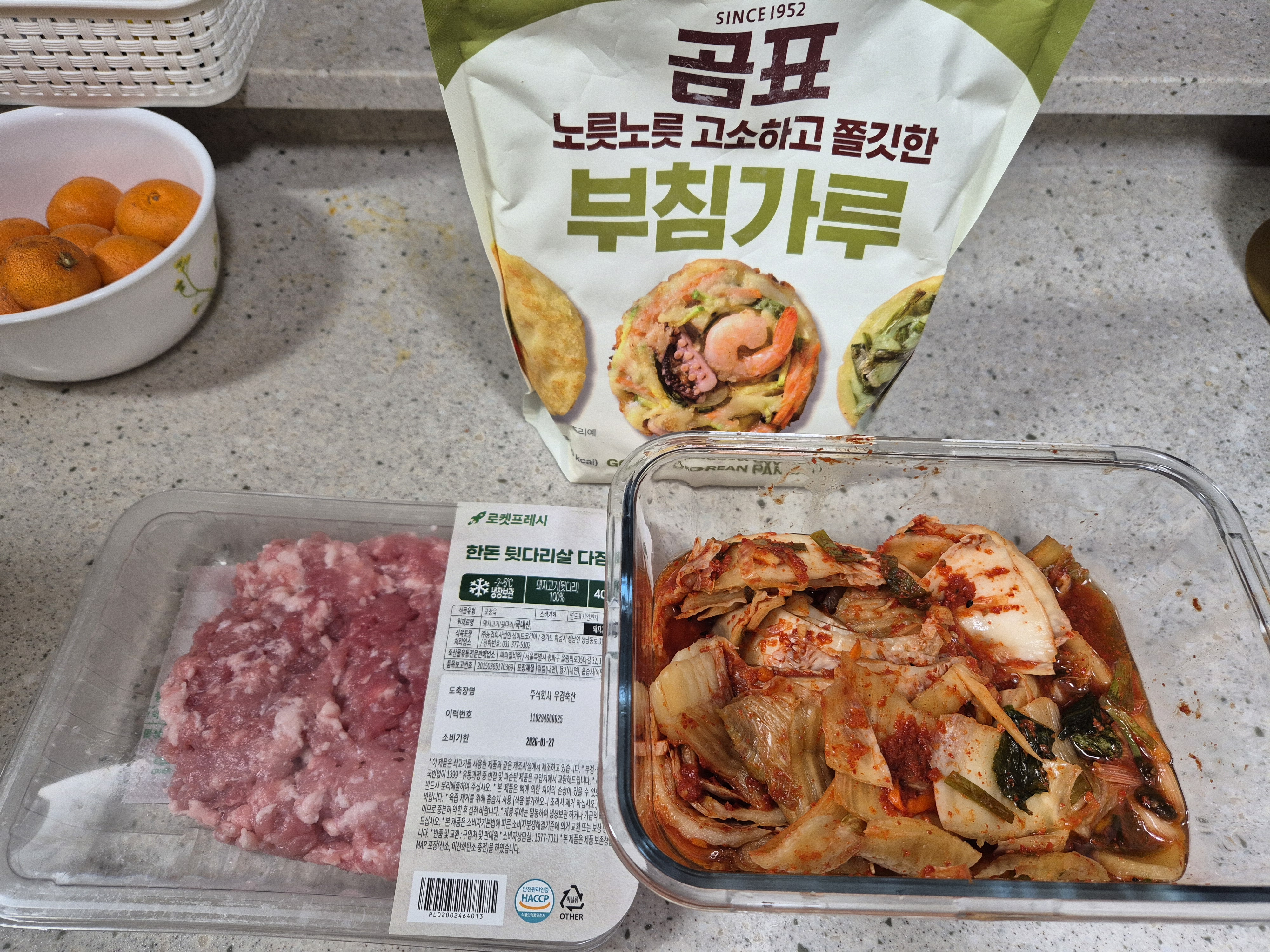 그냥 먹어도 맛있는 김치전이지만 돼지고기를 넣어