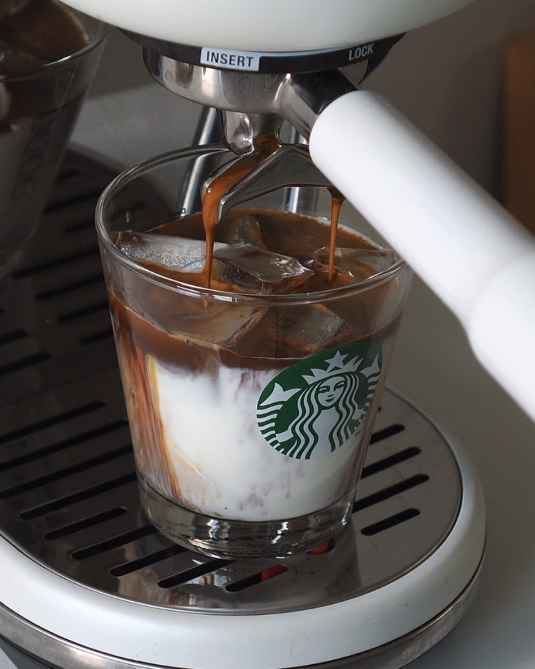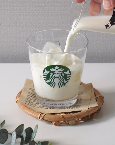 얼음 적당량 , 바닐라시럽 8 g , 우유 110 ml , 에스프레소 25 ml