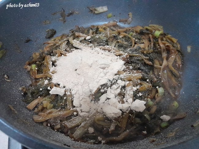 집된장. 1T , 다진마늘 1/3T , 들기름 1/3T+1/2T+한 바퀴 , 가루육수 1포 , 표고가루(들깨가루 대체 가능) 1T