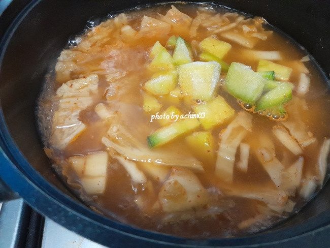 코인육수 1개 , 집된장 1/2T , 다진마늘 1/2T