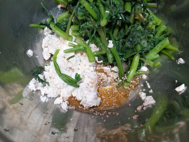 향 좋은 나물반찬 쑥갓두부액젓무침 입니다