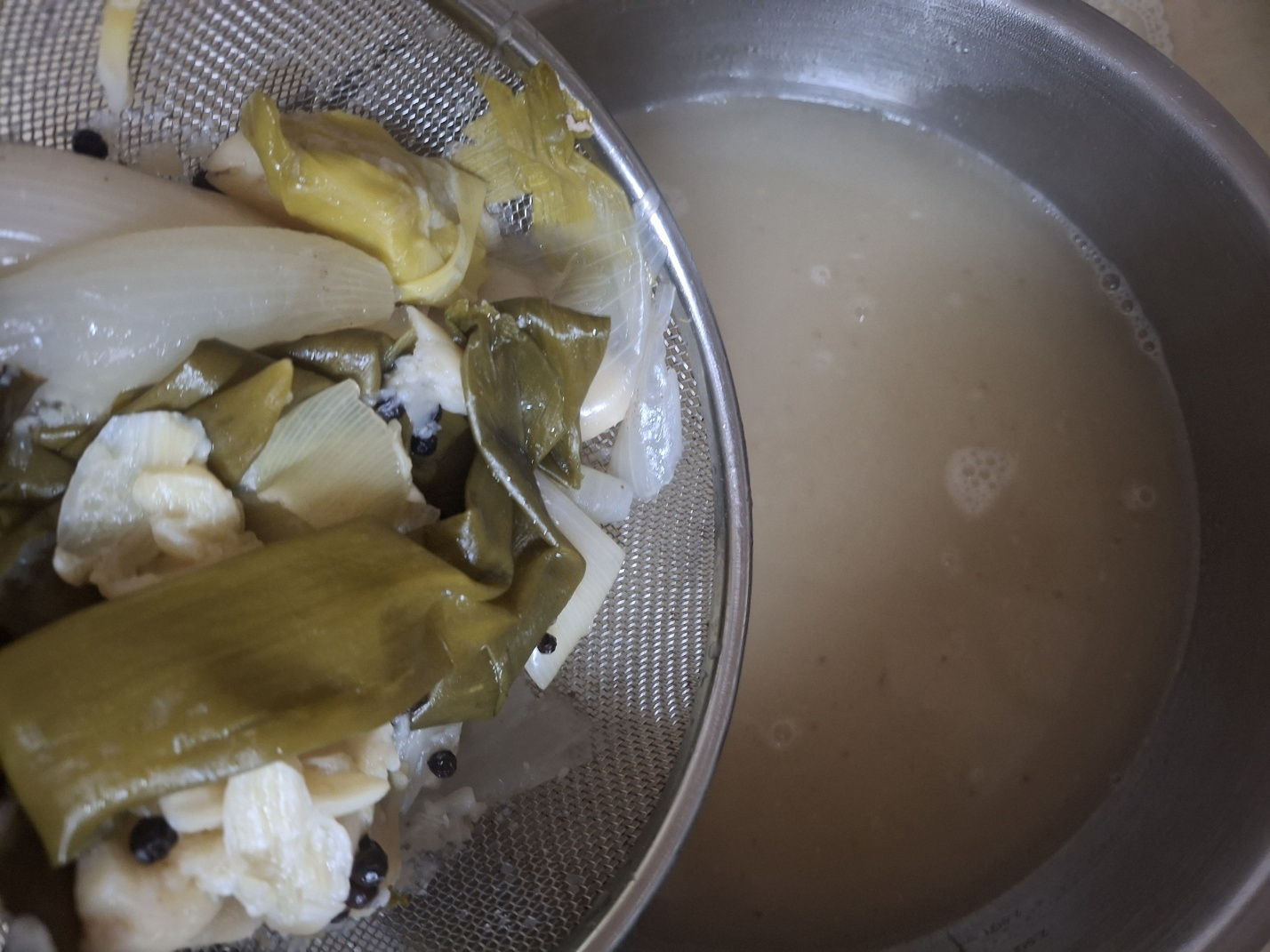 생수를 부어 끓일 때 바닥에 다시마 2조각 (10×10)을 깔아서 끓이면 깊은 맛이 나와요.