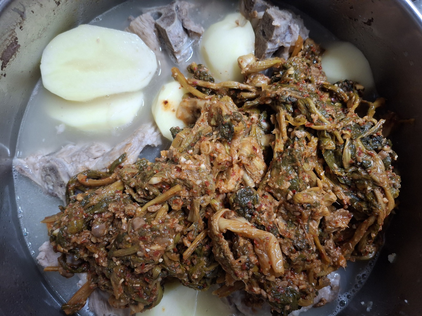 살이 많이 붙은 등뼈와 더 많은 우거지를 넣어 먹을 수 있어서 너무 좋아요.