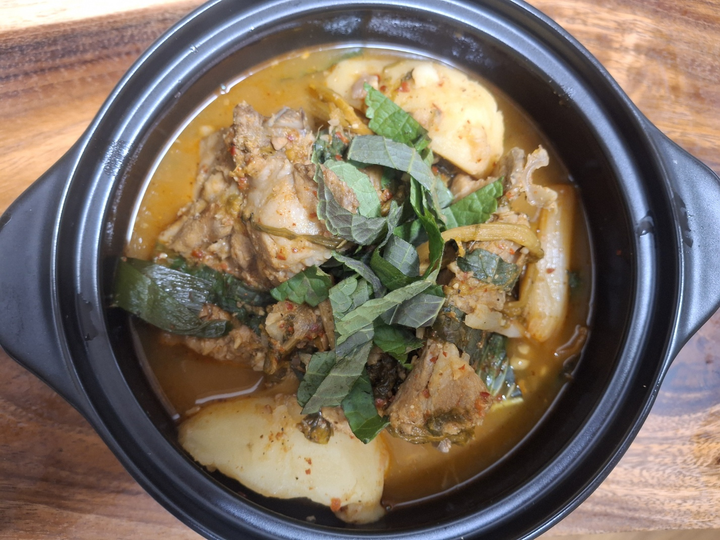 신선한 등뼈와 부드러운 우거지 시래기로 만든 감자탕을 소개해요.