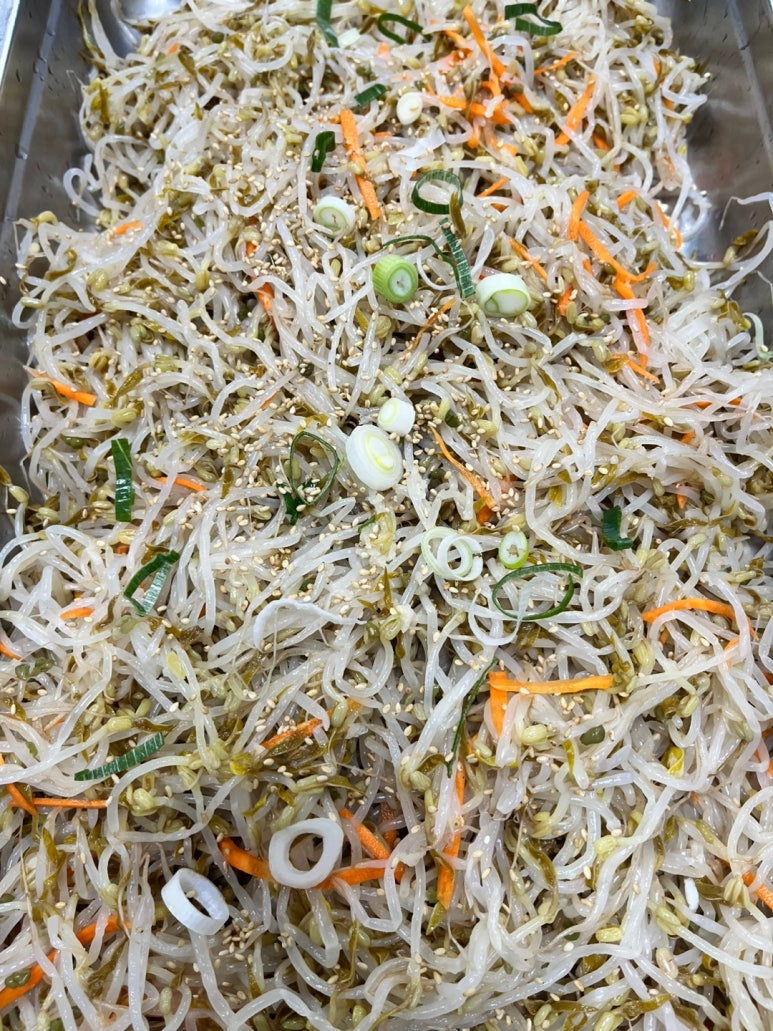 숙주나물 300 g , 당근(색감용) 약간 , 대파 (쪽파 가능)색감용 약