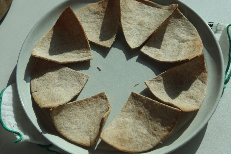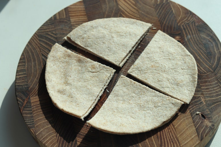 또띠아를 한 입 크기로 썰어