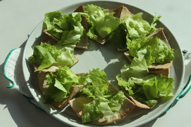 구워준 후에 위에 샐러드 올려서