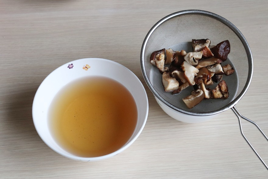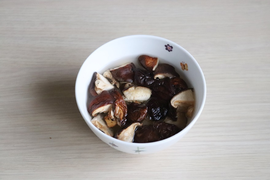 순두부 1 봉 , 양파 1/2 개 , 건표고버섯 1 컵 , 청홍고추 1/2 개씩 , 대파 , 통깨 , 표고버섯 우린 물 1.5 컵