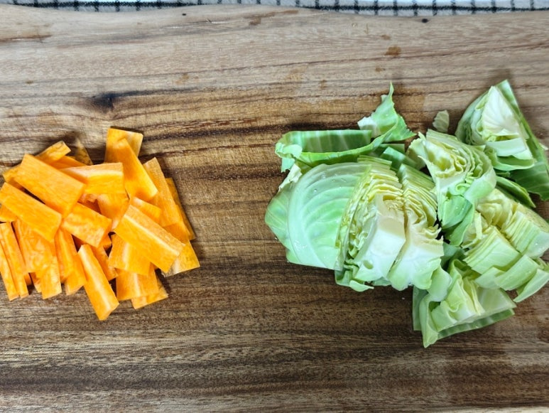 손질된 쭈꾸미 400g , 양배추 100g , 양파 1/2개 , 대파 1/2개 , 당근 50g , 다진 마늘 1T , 진간장 1.5T , 대게백간장 1T , 고추장 1T , 고춧가루 2T , 꿀 1T , 맛술 1T , 후추 0.5t , 생강가루 0.5t , 참기름 1t , 통깨 1t , 올리브오일 1T