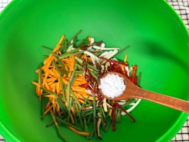 할 때까지 어머님께서 매운 김치 대신