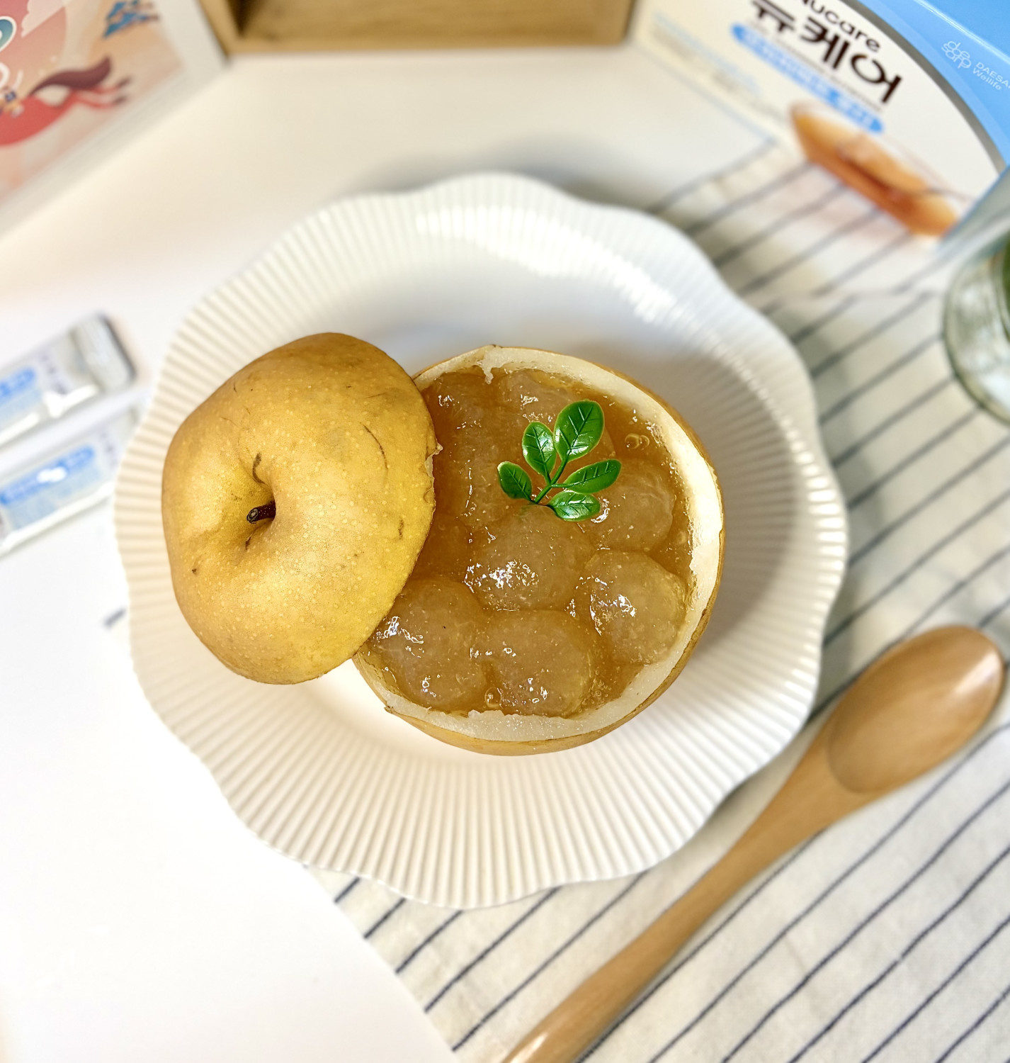 겨울철 감기 예방과 기관지 건강에 도움을 주는 전통 보양식 ‘배숙’을 연하보조식으로 재해석했습니다. 연하퍼펙트 푸디를 활용해 은은한 배 향과 달콤한 맛을 살려 연하곤란자도 부담 없이 즐길 수 있을 것 같습니다. 따뜻한 배숙 한 그릇으로 몸을 달래던 기억처럼 연하곤란자에게도 빠른 회복을 바라는 마음을 담아 이 메뉴를 개발했습니다.
