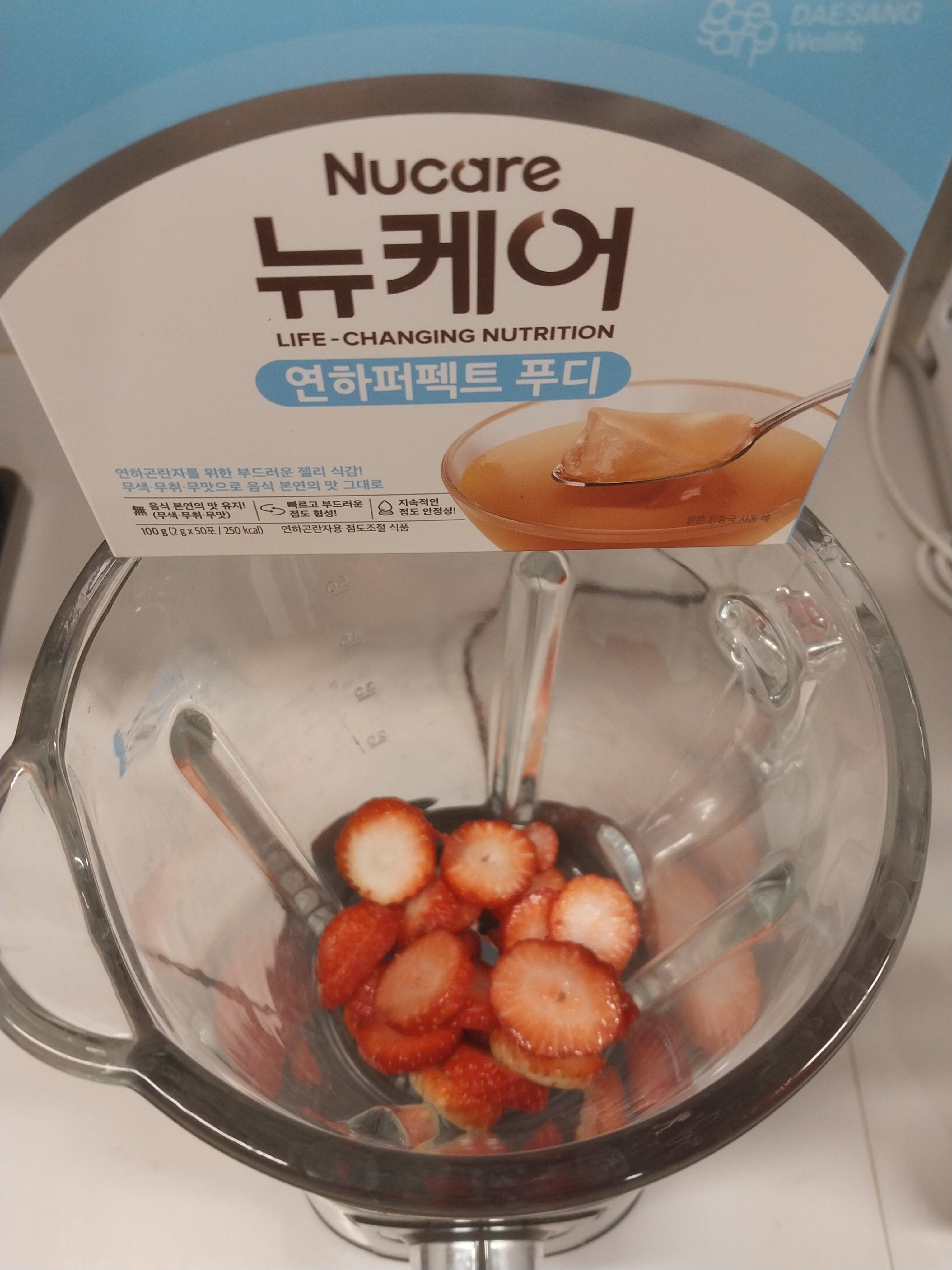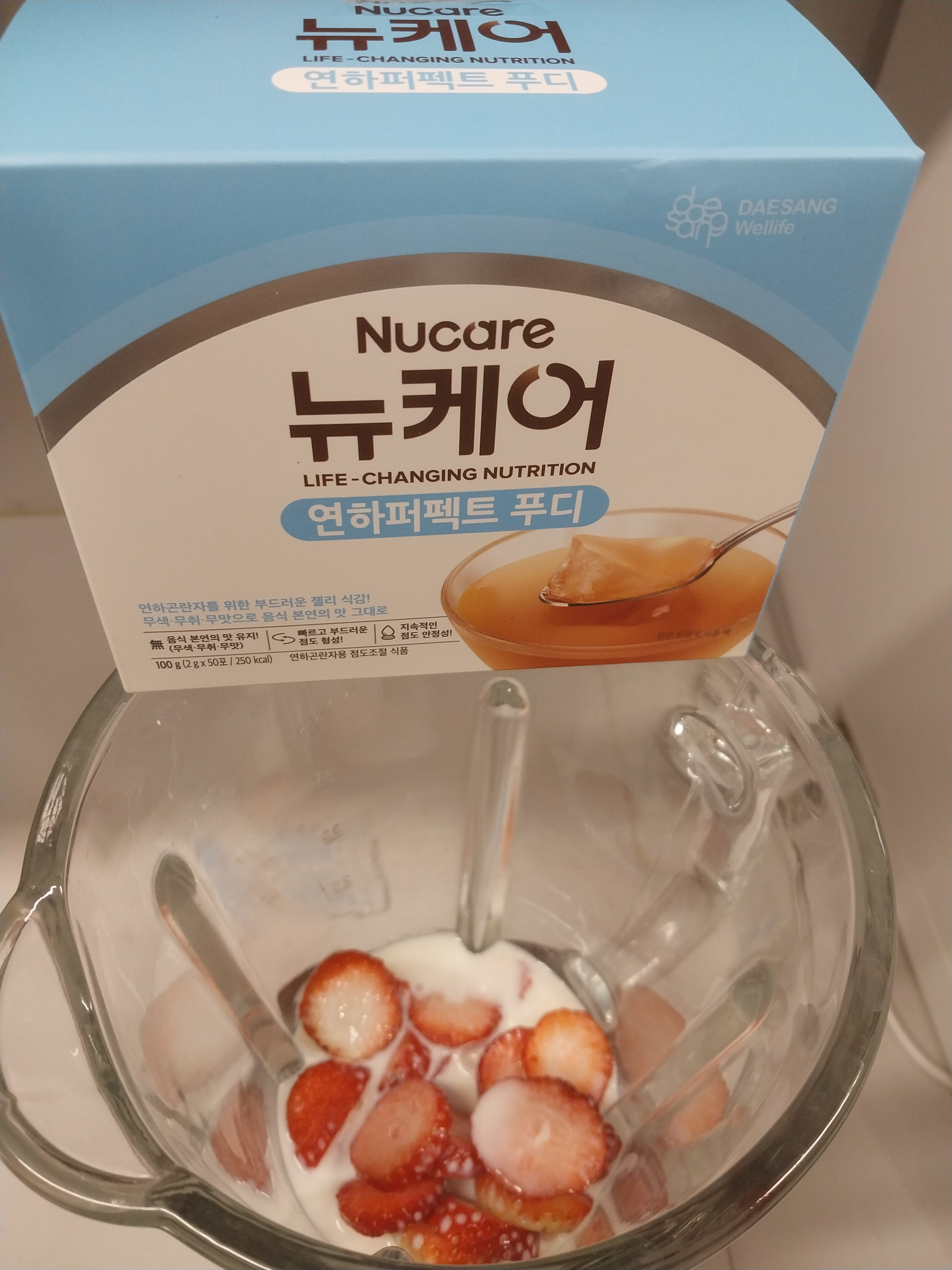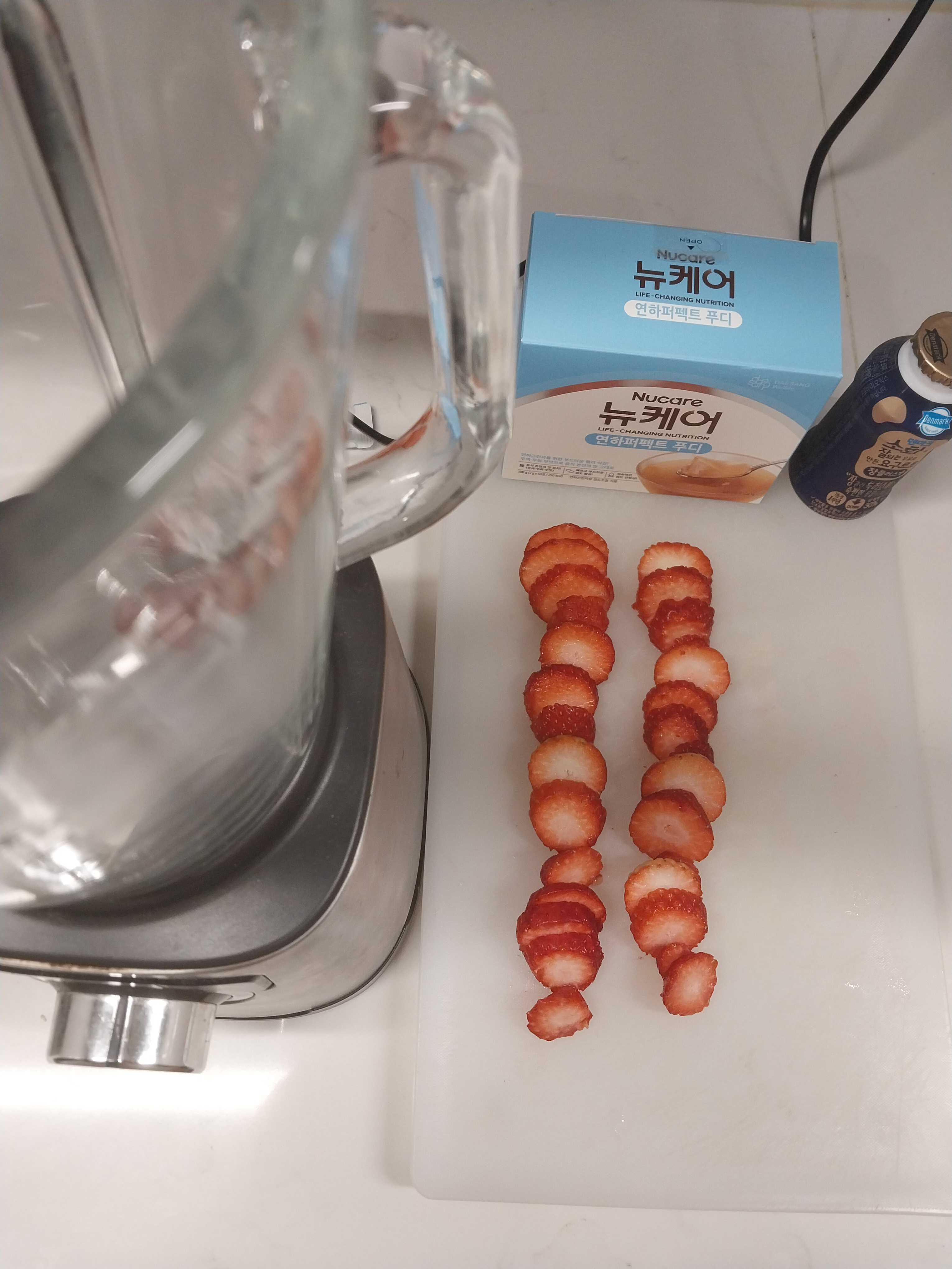 딸기 8개 , 요구르트 150ml , 연하퍼펙트 푸디 4g
