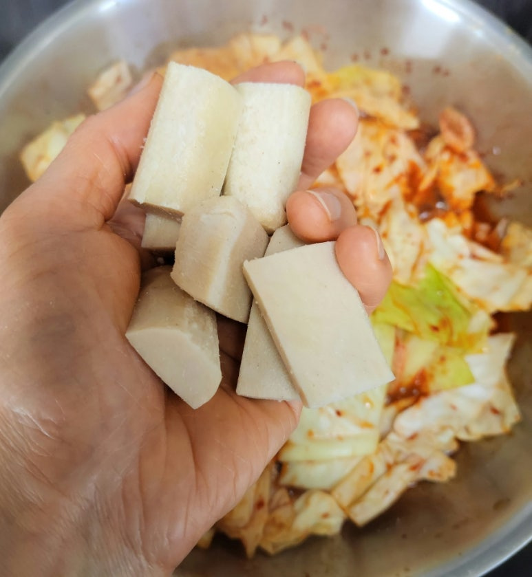 어묵대신 약간 비슷한 식감의 냉동 두부, 즉 얼린 두부를 사용 ( 어묵은 조미해서 튀긴 찝찝한 가공식품~) 넣어서 만든 떡볶이를 소개합니다. 얼린 두부는 수분이 빠져서 탄탄하고 쫄깃한 식감에 고소하고 또 작은 구멍이 생겨서 양념을 잘 흡수하니.. 어묵 대체품으로 꽤 괜찮은 선택이라 생각합니다.고단백. 건강식 떡볶이로 추천해 봅니다.