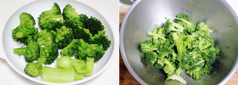 찜기에 찐 브로콜리는 그대로 쟁반에 펴서 식혀준 다음