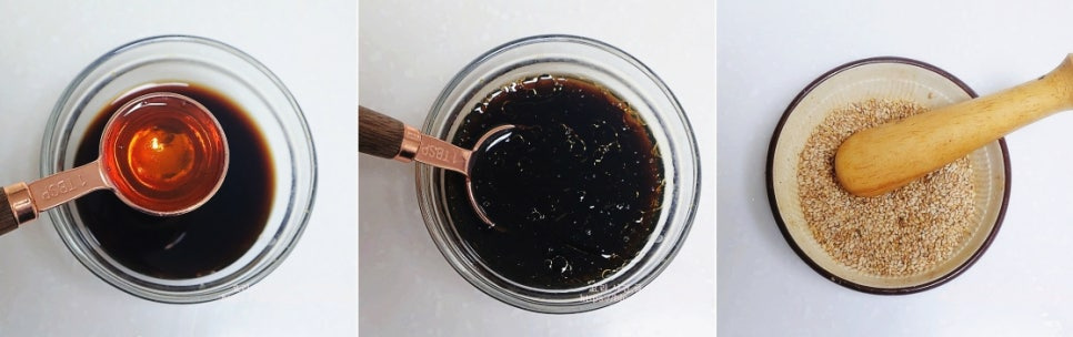 간장소스와 통깨 간 것을 넣고 조물조물 무쳐주면