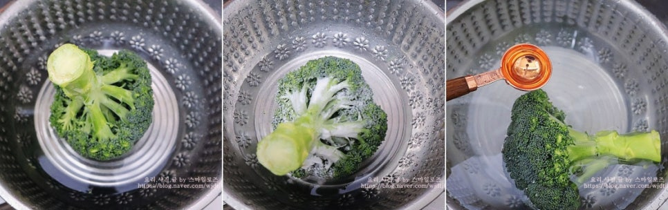 브로콜리는 베이킹소다와 식초를 1큰술 넣고 10분 정도 담가놓았어요