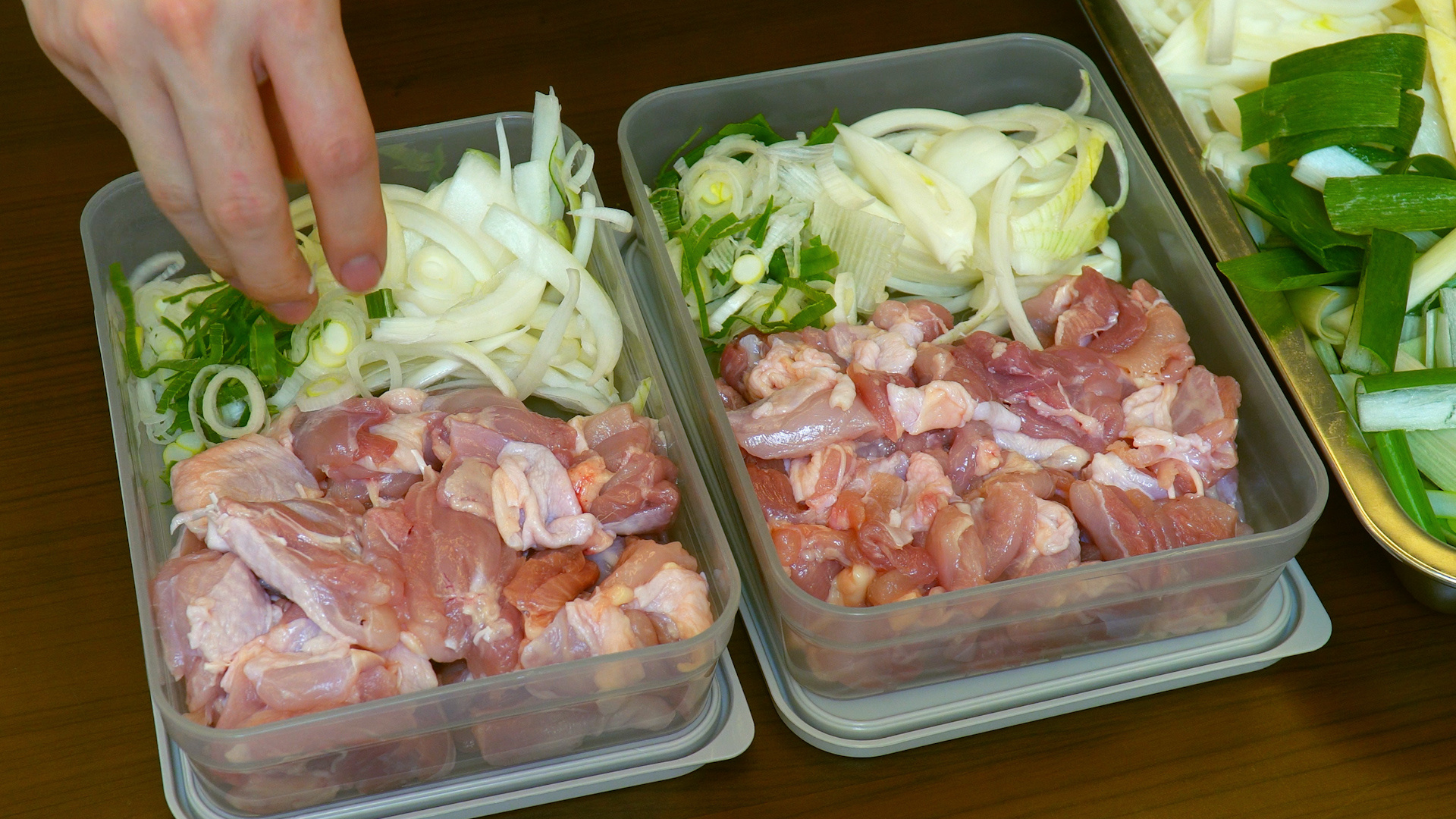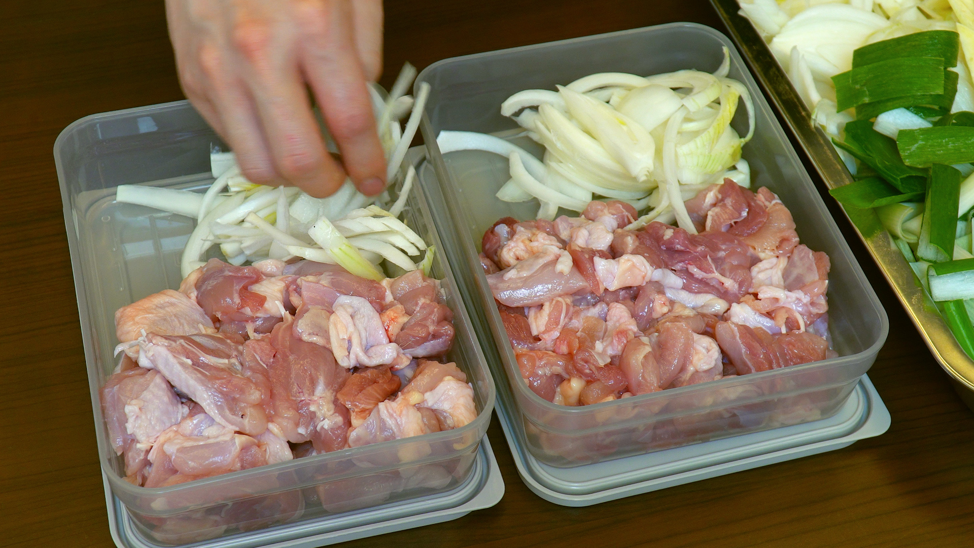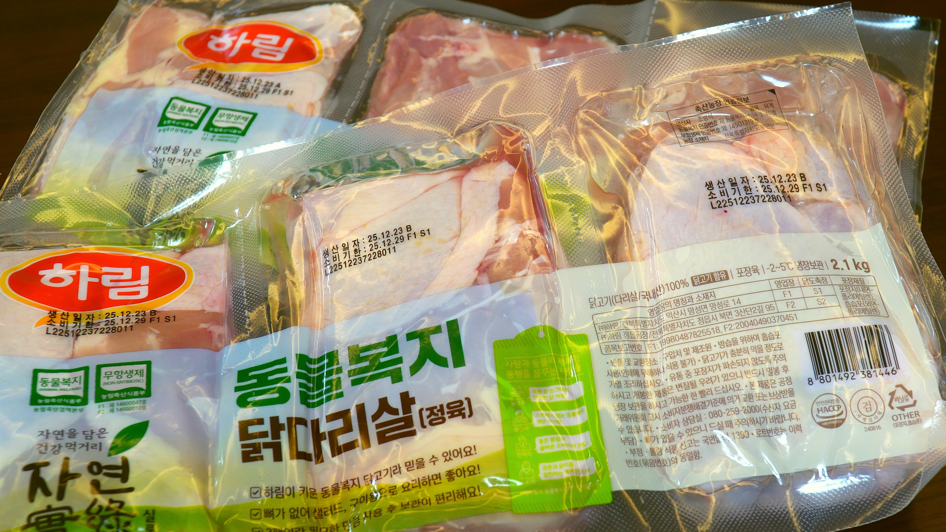 닭정육 1 kg (두팩 기준), 대파 1/2 대 (두팩 기준), 양파 1/2 개 (두팩 기준)