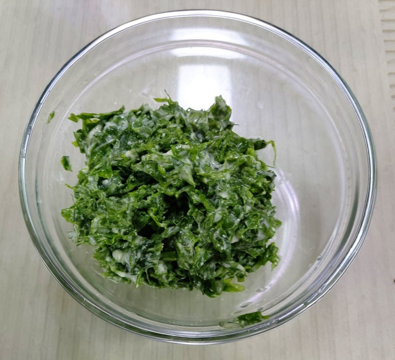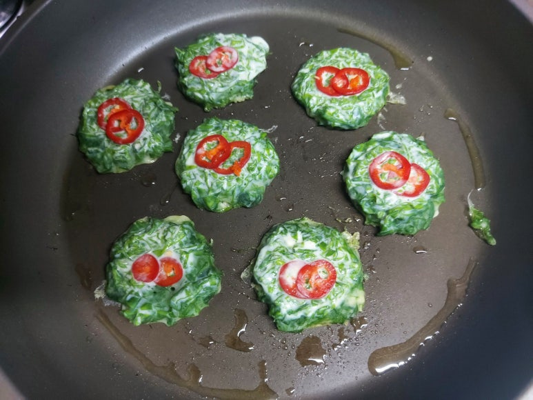 오늘은 파래를 사 왔어요 파래는 겨울이 제철로 바닷속 영양덩어리인 것 아시죠 가늘고 부드러운 녹색의 실타래처럼 엉켜있어요 파래는 무침으로 만들어 먹지만 오늘은 파래 전 해보았어요 파래는 칼슘 요오드칼륨과 식물성 섬유소 등 몸에 좋은 성분을 골고루 함유하고 있으며 열량도 낮고 철분이 풍부해 비타민 C 가 많이 함유된 오이와 같이 섭취하면 흡수율이 높일 수 있습니다 다른 식품에 비해 무기질과 칼슘이 풍부하게 함유하여 골다공증에도 좋으며 조혈작용에도 효과적입니다