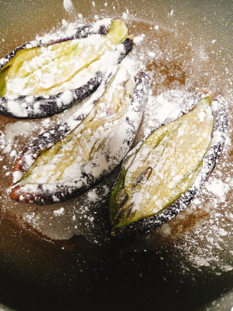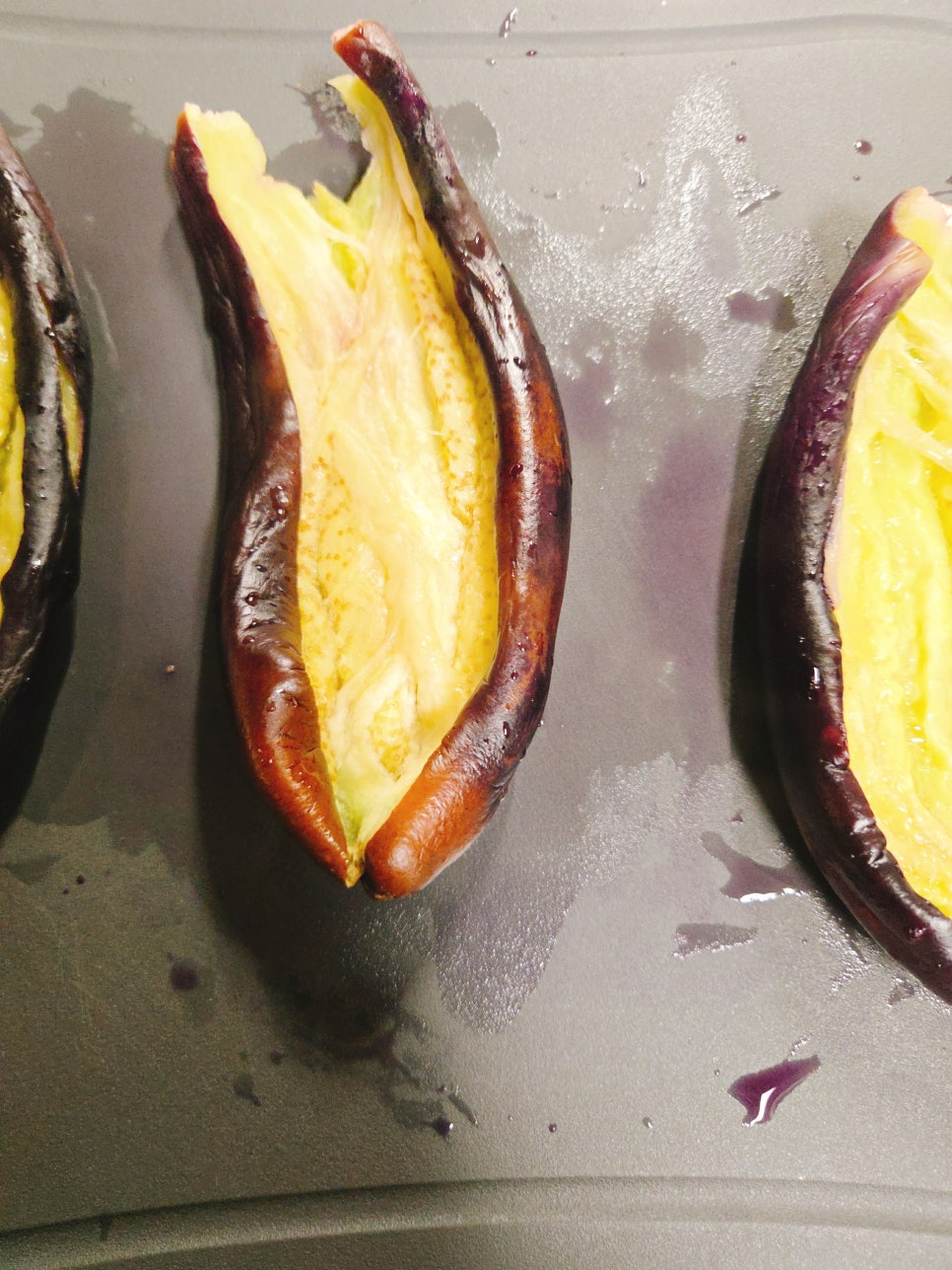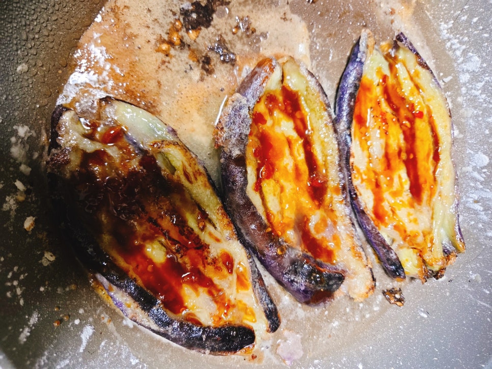잘 쩐지 가지는 반으로 갈라서 식혀주세요