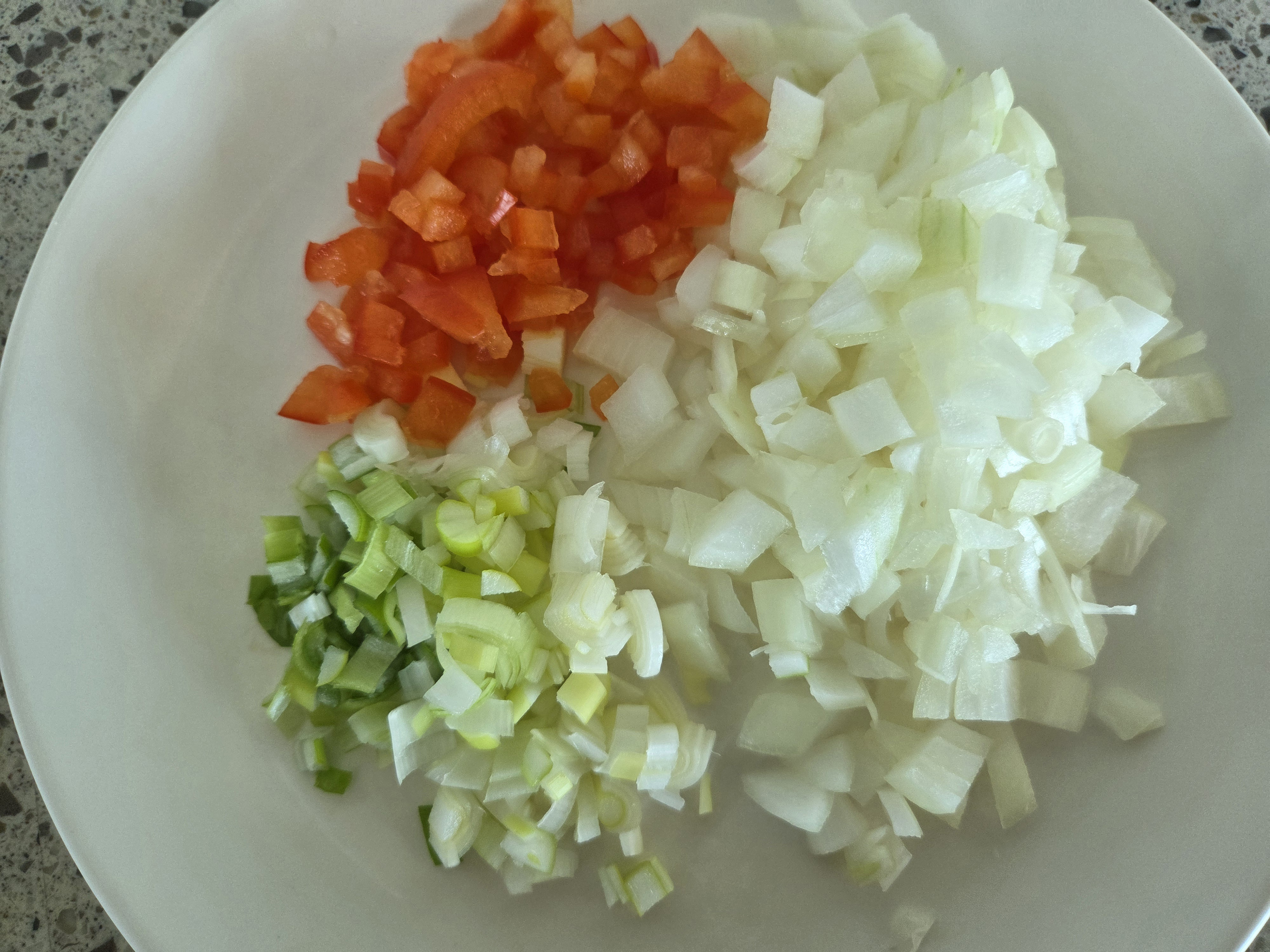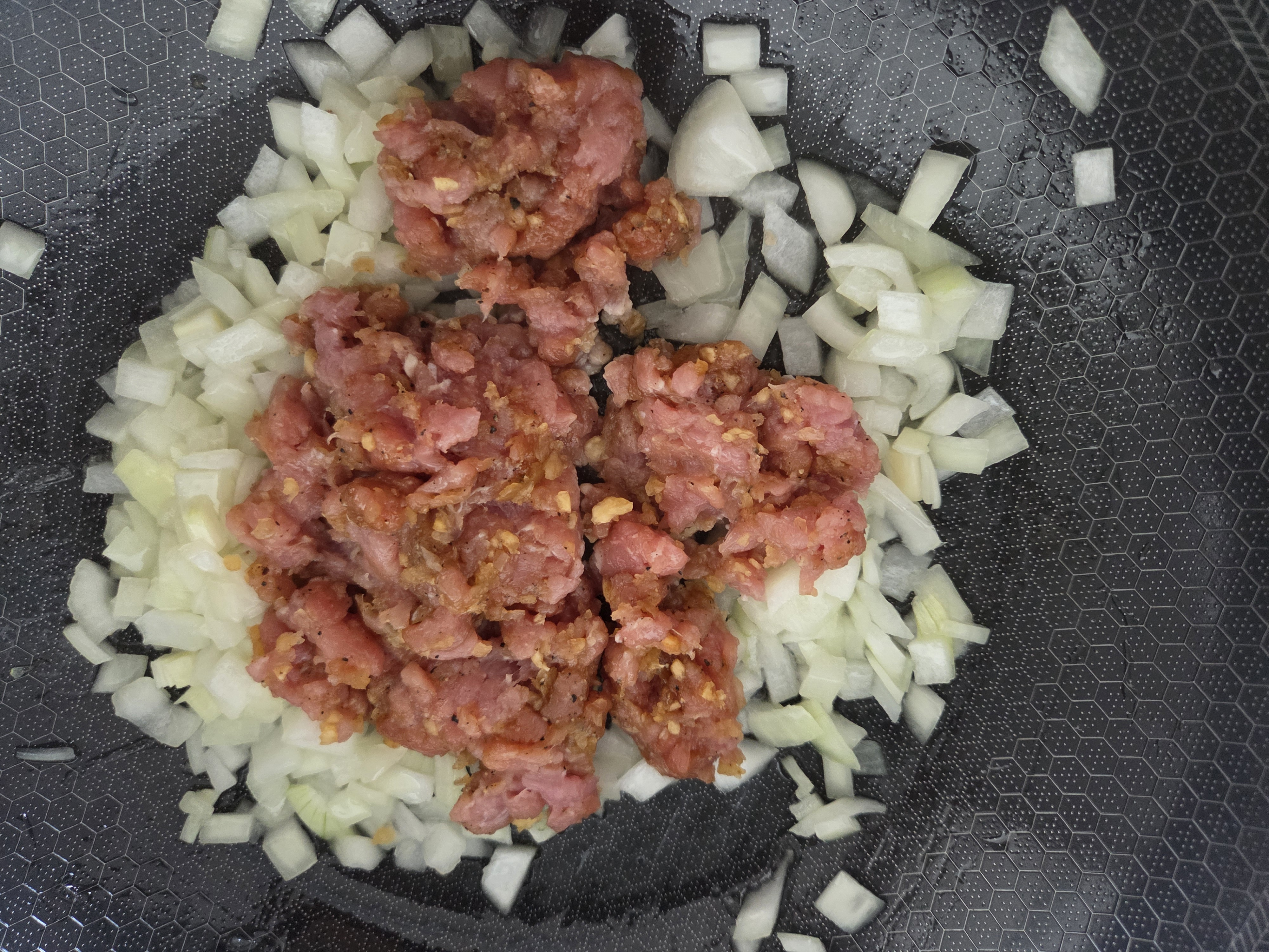 순두부 1 봉 , 간돼지고기 150 g , 양파 1/2 개 , 대파 1/2 대 , 빨강파프리카 1/4 개 , 식용유 1 T