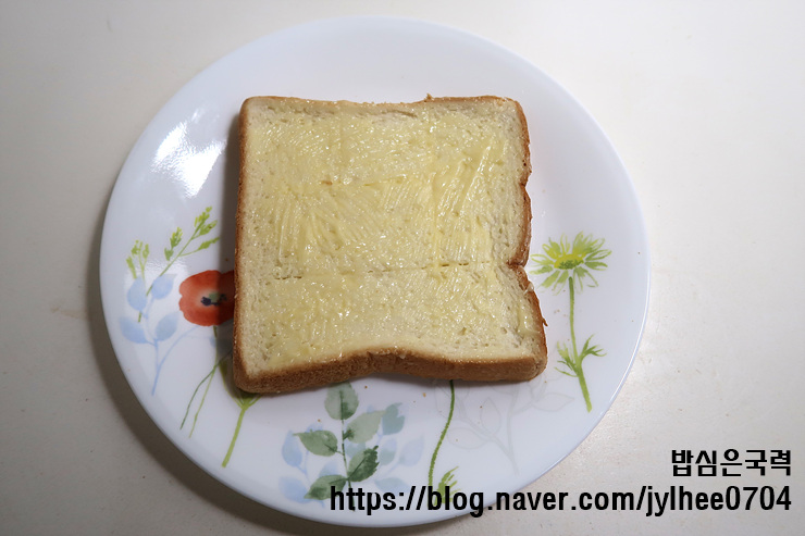 버터꿀을 식빵 앞면에 듬뿍