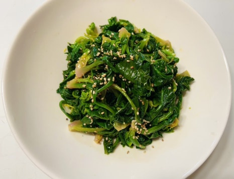 육지의 초록 시금치와 바다의 초록 감태가 만나 같이 초록초록하니 산뜻함에 보는 눈이 즐거워져요.