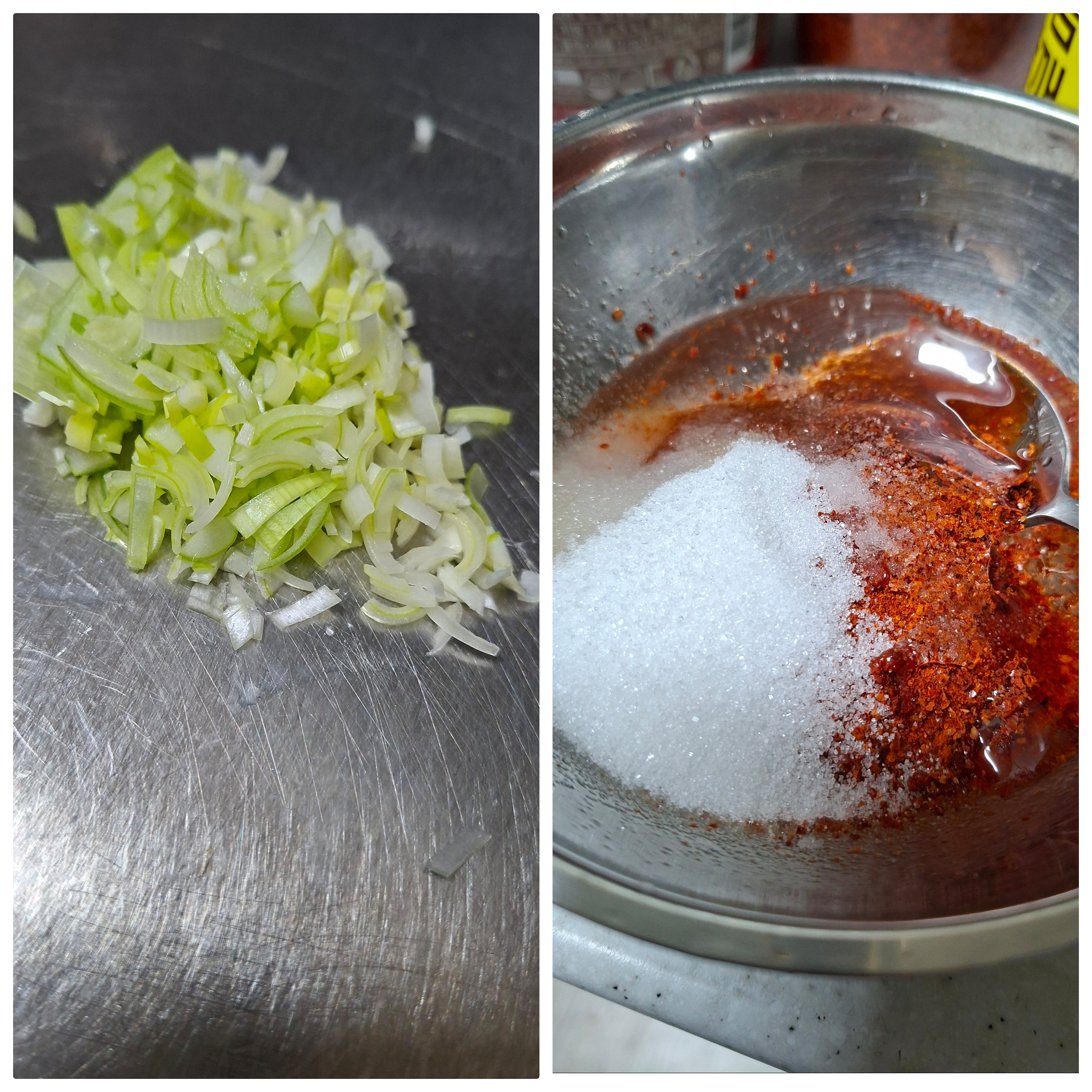 고추장 크게1큰술 , 고추가루 1큰술 , 2배식초 1큰술반 , 설탕 1큰술 , 올리고당 1큰술 , 소금 조금 , 참기름 아주살짝 , 통깨 조금