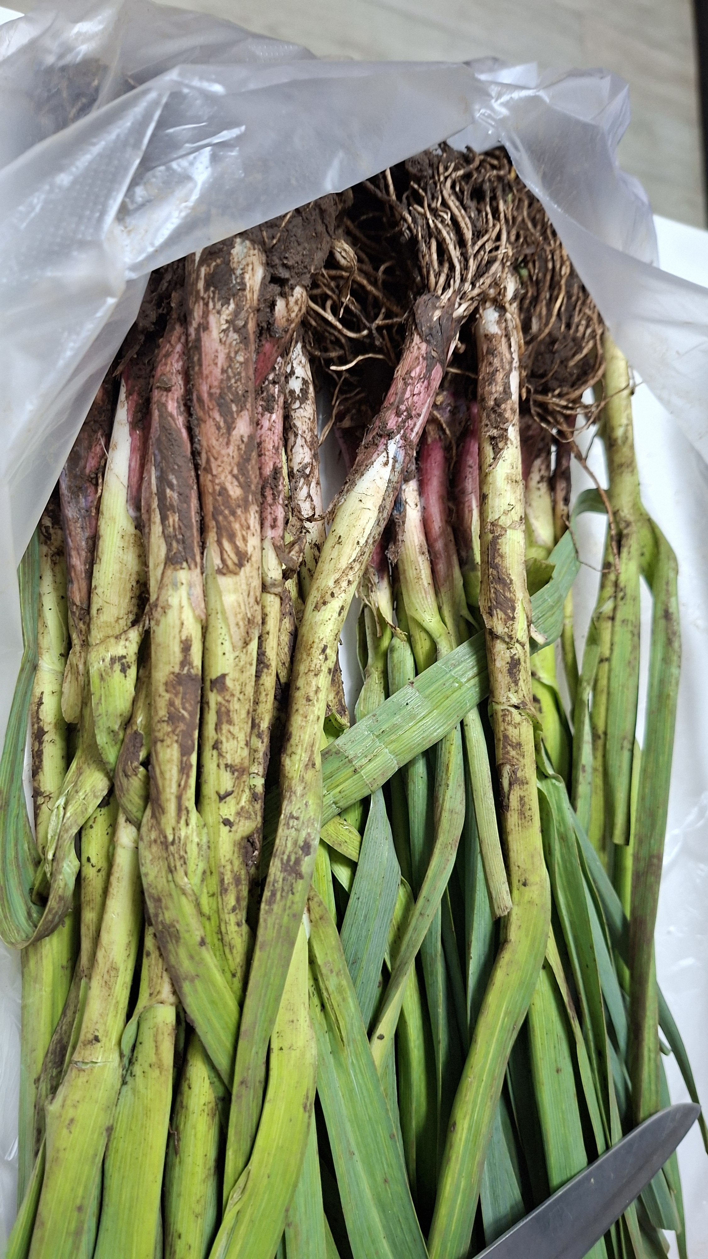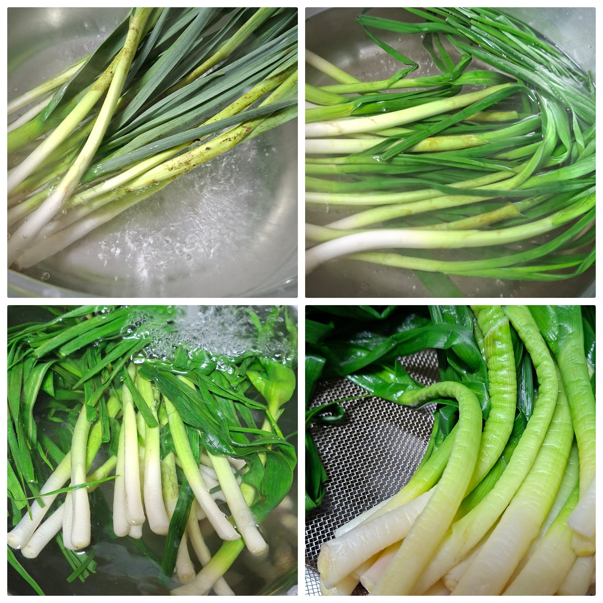 풋마늘대 반단 , 대파 조금 , 데칠때소금 1작은술
