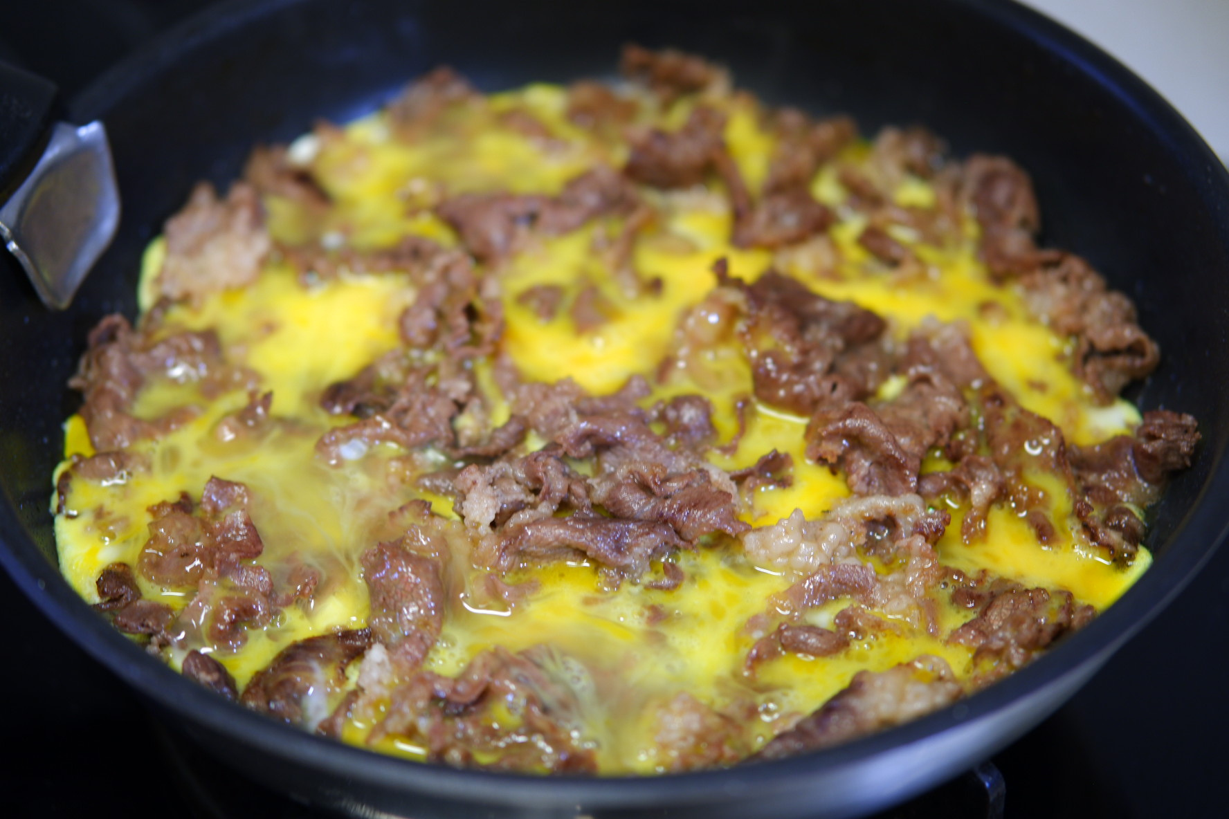 얇게 썬 소고기를 볶아 주신 뒤 달걀물 부어 한 번에 구워내면 시간과 노력은 절약하면서도 기존 육전과 같은 맛으로 드실 수 있거든요.