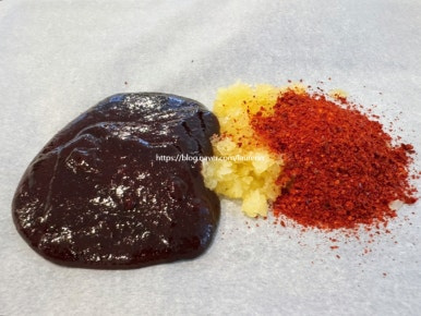 다진마늘 2큰술 , 매운 고춧가루 3큰술 , 매콤 불고기 소스 넉넉히 , 매실청 2큰술 , 닭가슴살 1팩 , 아보카도 오일 적당히 , 깨 적당히