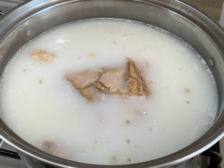 그 사골육수로 돼지국밥을 만들려고 합니다.