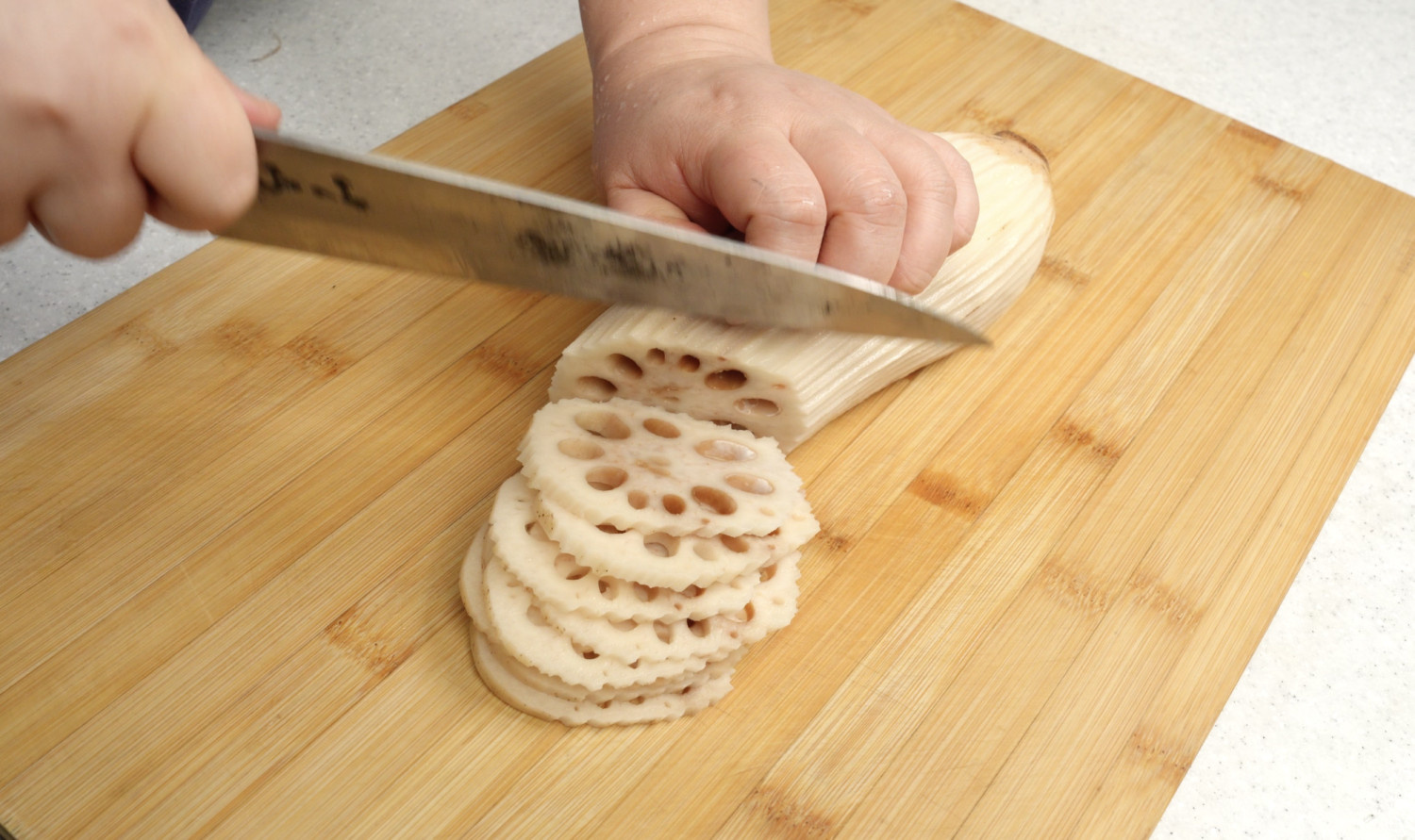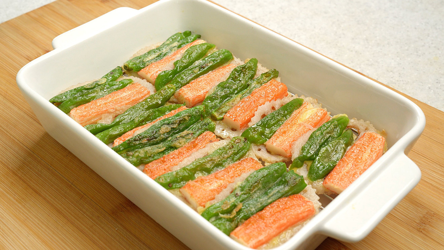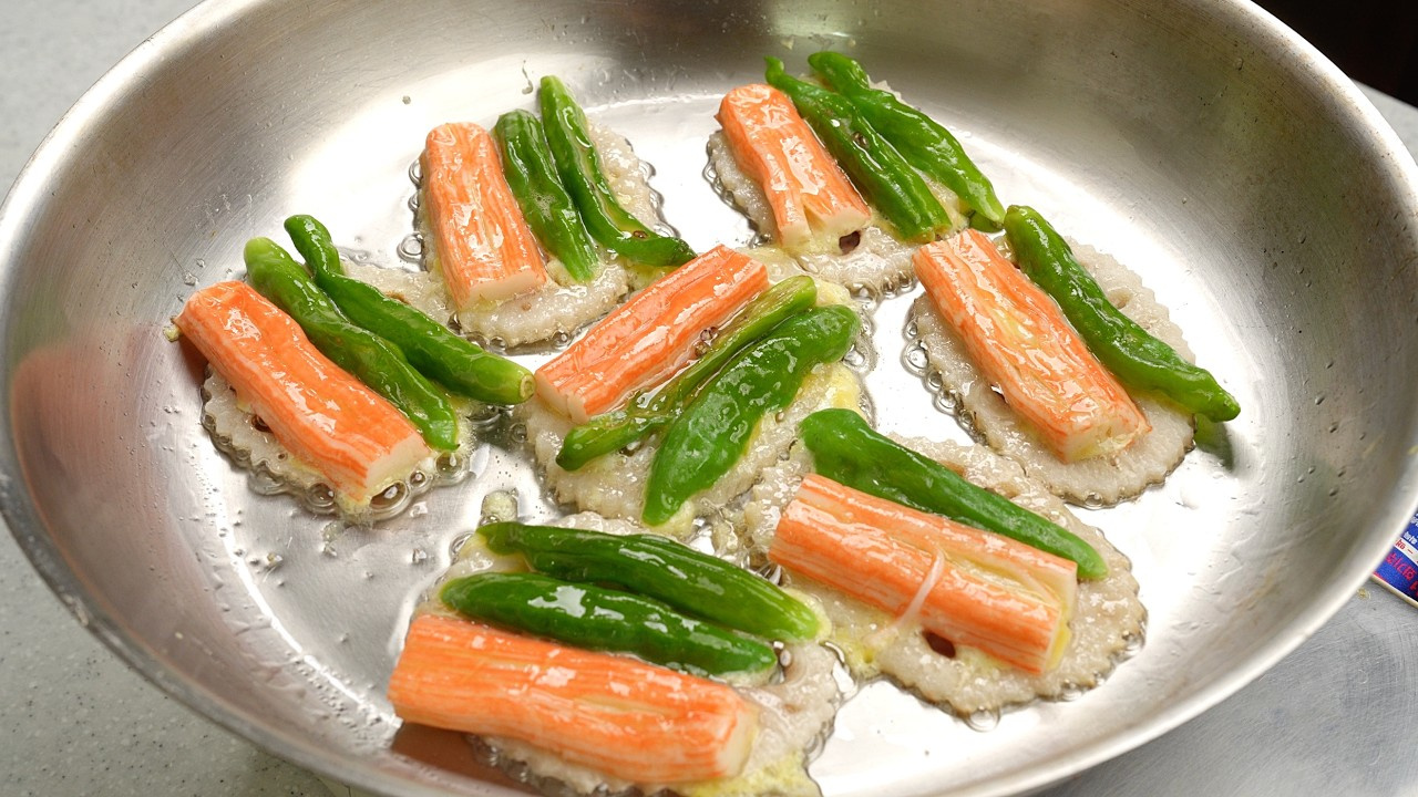 연근 1/2 개 , 꽈리고추 9 개 , 맛살 3 줄