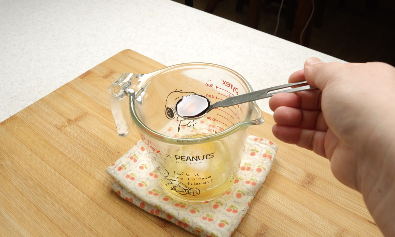 달걀 2 개 , 소금 1/3 작은술 , 참기름 1 작은술 , 전분가루 적당히