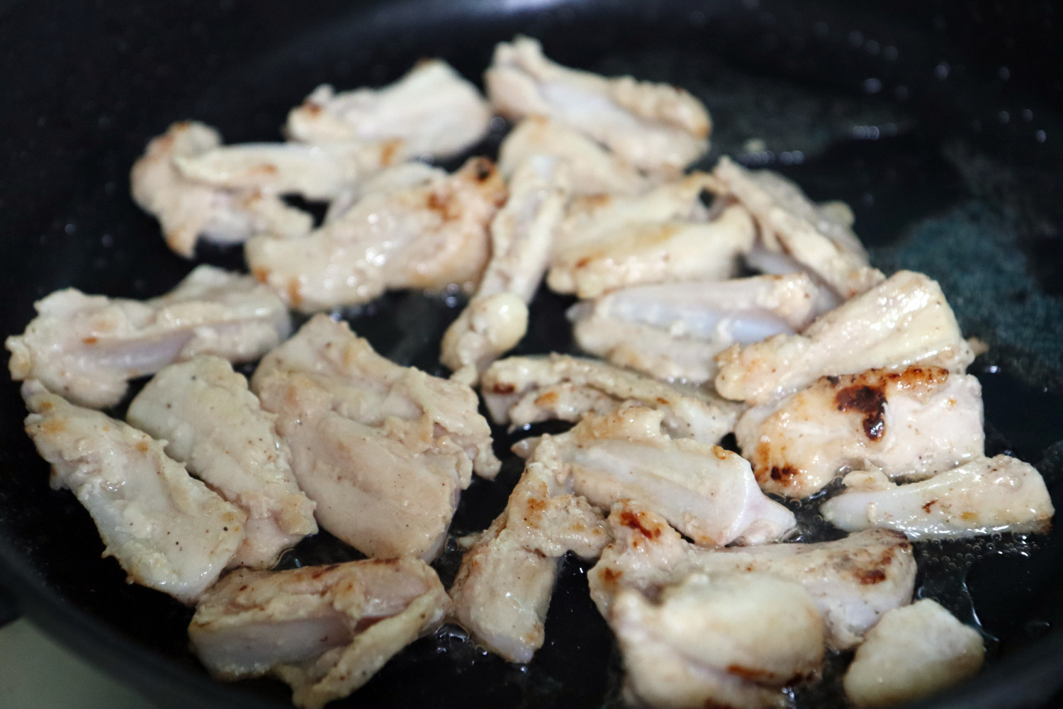 닭연골 250 g , 맛술 1 숟가락 , 후춧가루 조금 , 양파 1/2 개