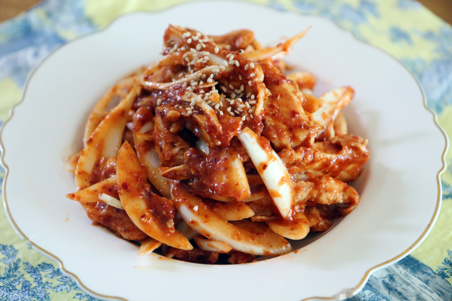 오독오독 씹는 맛이 매력적인 닭연골무침입니다.