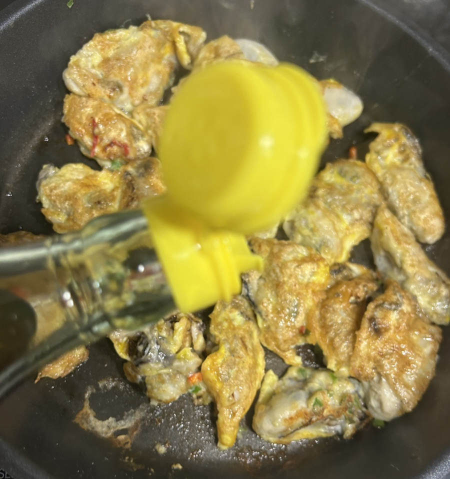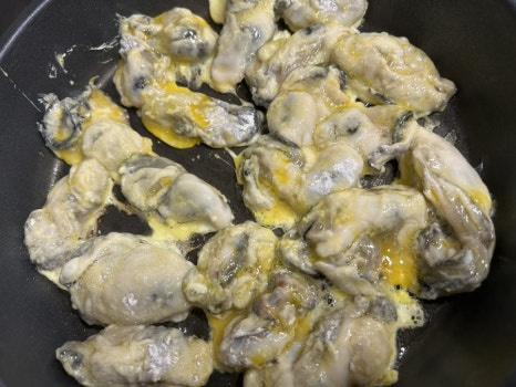 2. 굴에 맛술 뿌려 준 뒤 물기 빼주기